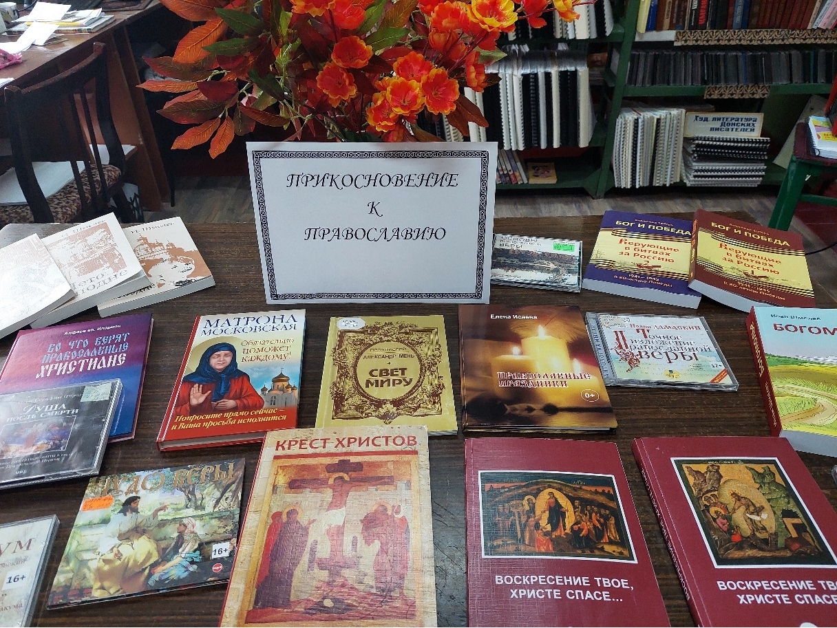 В преддверии Пасхальной недели Красносулинский пункт выдачи подготовил книжную выставку «Прикосновение к православию», где представлена литература, посвященная Пасхе, ее истории и значимости в жизни православных людей, особенностям празднования на Руси, включая пасхальные блюда славянской кухни, и раскрытию значений того, что собой символизирует самый древний христианский праздник.